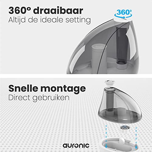 EEN GEZONDE LUCHTVOCHTIGHEID: Behandel doeltreffend een droge huid, neus, keel en lippen met deze waterverdamper van Auronic en verlicht enkele symptomen veroorzaakt door griep of verkoudheid. Verbeter met een vernevelapparaat je ademhaling en creëer een aangename en leefbare omgeving voor jezelf, je familie en je huisdieren gedurende de dag of om in te slapen.