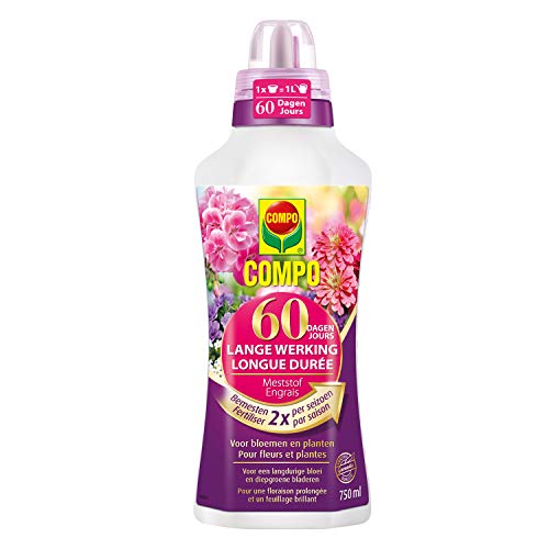 COMPO Vloeibare Meststof 60 Dagen Lange Werking, voor een langdurige bloei en diepgroene bladeren, voor bloemen en planten, 750 ml