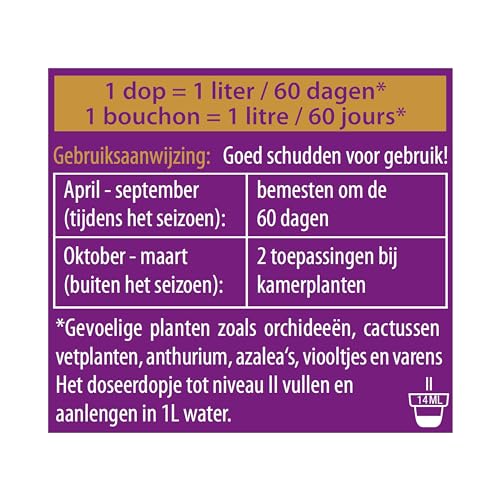 Eenvoudig in gebruik: correct en veilig doseren dankzij de doseerdop met schaalverdeling (II voor 1 l water, 2x toepassen per seizoen van mei tot augustus); voor kamerplanten het hele jaar door mogelijk