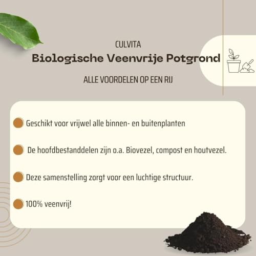 Culvita – Biologische turfvrije potgrond 40 liter – Potgrond voor binnen- en buitenplanten – inclusief organische meststof.