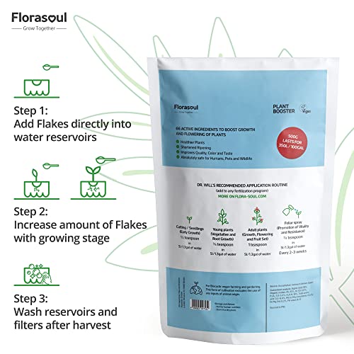 🌏 TOEPASSING De booster wordt direct toegevoegd aan de voedingsoplossing van je Hydro Grow System. Het is gemakkelijk en veilig in gebruik. Een overaanbod met de booster geeft hetzelfde effect als planten zonder Florasoul behandeling, minder groei. Gedetailleerde toepassingsaanbeveling van Dr. Will op de verpakking.
