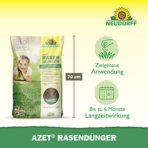 Neudorff Azet Gazonmest – biologische biologische gazonmest voor 400 m² zorgt voor een dicht, groen en duurzaam gazonoppervlak, 20 kg
