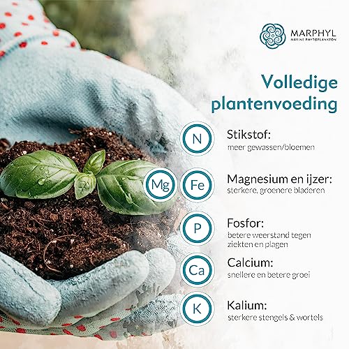 MARPHYL Organische Bodemverbeteraar: Onze vloeibare meststof op basis van mariene fytoplankton is volledig natuurlijk, veganistisch, niet-GMO en biologisch om je te helpen je planten en de omgeving waarin je leeft te voeden.