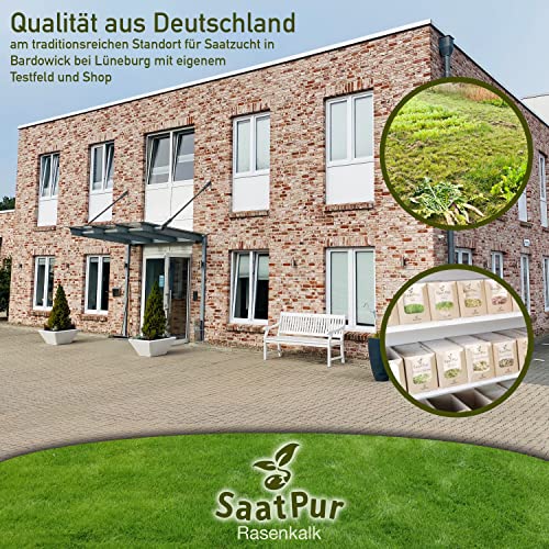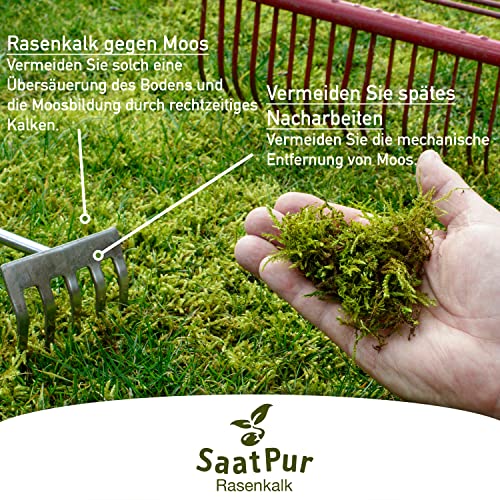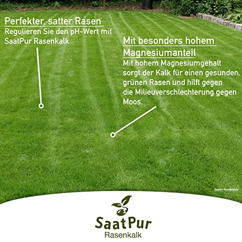 SaatPur Gazonkalk – 20 kg voor ca. 400 vierkante meter – Tuinkalk tegen mos en zure grond – Magnesiumkalk als gegranuleerde gazonkalkkorrels voor eenvoudig verspreiden, zelfs met een strooier
