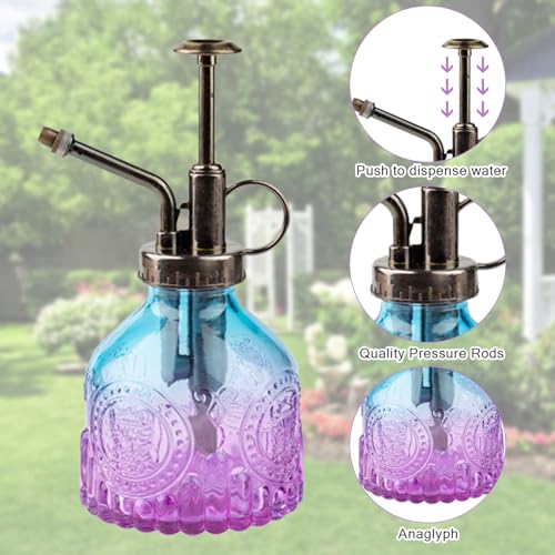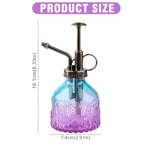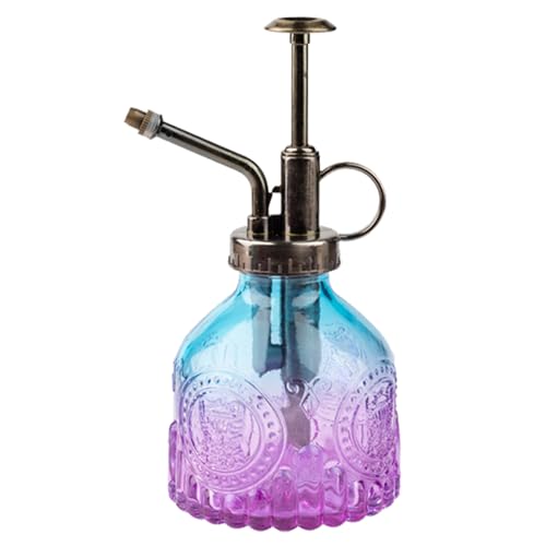 Glazen plant Mister 205 ml, retro gietfles met bronzen toppomp, meneer spuitfles, tuin, bloemensproeier, gieter voor buiten, binnen, kamerplant (blauwpaars)