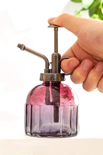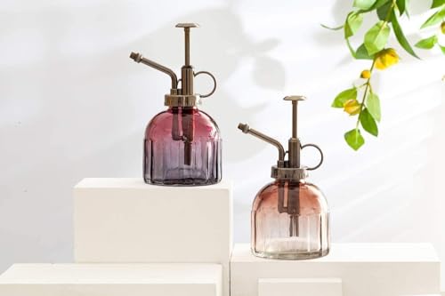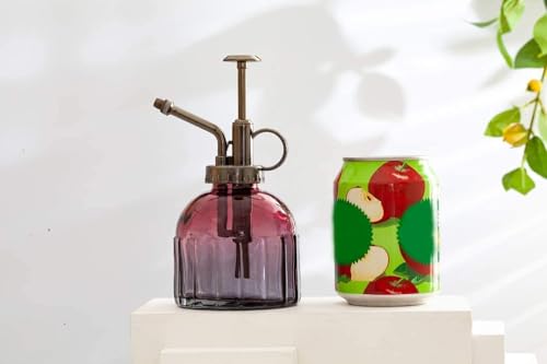Glazen Plant Mister Spuitfles, 16,5 cm Hoge Vintage Stijl Spritzer Brons Plastic Top Pomp Eén Hand Gieter Glas Spary Fles Plant Mister Glas Gieter Tuin Gereedschap (Rood Grijs Gradiënt)