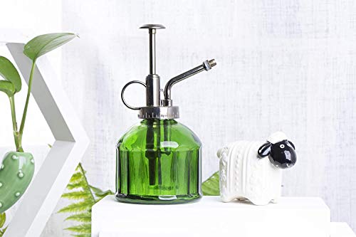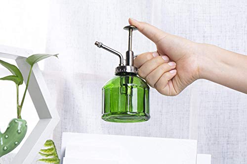 MEETOZ Glazen Plant Mister Spray Fles, 6,3 inch Tall Vintage Stijl Spritzer Brons Plastic Top Pomp Een Hand Watering Kan Indoor Plant Spray Fles voor Tuin, Planten, Reiniging (Groen)