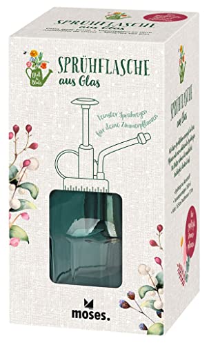 moses. Blad & bloesem spuitfles. De bloemenverstuiver is perfect geschikt voor het bewateren van grootbladige planten binnen of buiten, thuis of op kantoor. Niet alleen in de grond hebben planten voldoende water nodig, ook direct op de bladeren worden ze van tijd tot tijd direct bevochtigd. Of het nu gaat om klimop, monstera, aloë vera, vetplanten, cactus of kruiden – met de kleine spuitfles kunnen de groene vrienden doelgericht worden besproeid en verzorgd. De vintage gieter met sproeikop is niet alleen praktisch, maar maakt ook echt iets uit. Hij is ook geschikt als mooi decoratief object op het rek of naast de potplant. Het glas heeft een delicaat blauw kleurverloop, terwijl de sproeikop van kunststof in een zilveren look glanst. Een mooi cadeau-idee voor plantenliefhebbers en tuinliefhebbers – voor een housewarming, verjaardag of als klein cadeautje voor plantenliefhebbers. Alle informatie op een rijtje: ✓ 225 ml inhoud ✓ houder van glas ✓ sproeikop van kunststof ✓ ca. 15,5 x diameter 7,7 cm