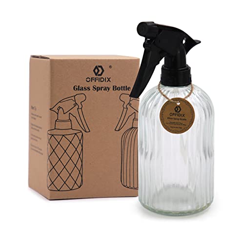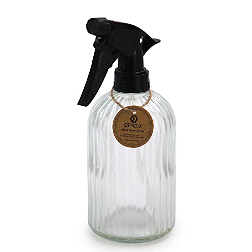 OFFIDIX Glazen spuitfles, handdrukplant Mister 0,4L watersproeier gieter met verstelbaar mondstuk voor tuin, planten, reiniging (helder)