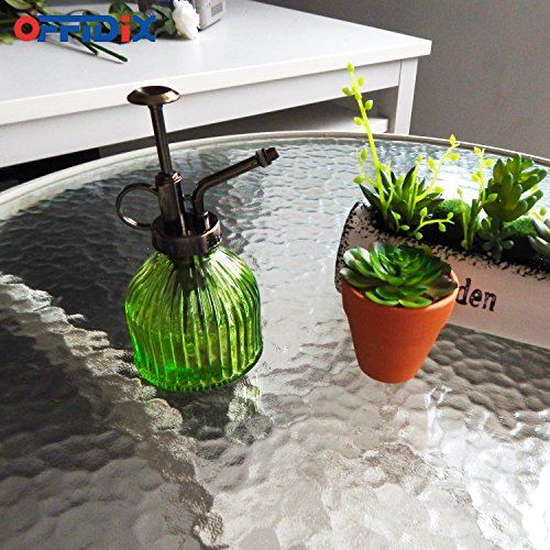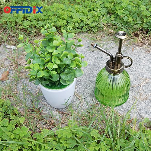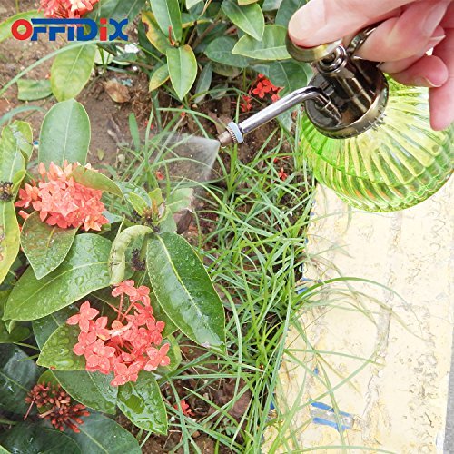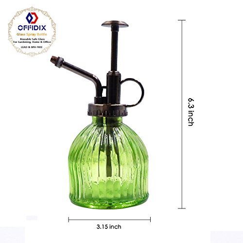 OFFIDIX Groene Glas Watering Spray Fles, 6.3 “Tall Vintage Style Spritzer met Brons Plastic Top Pomp Eén Hand Gieter (Groen)
