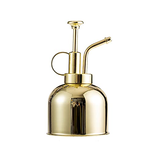 Plant Mister Spuitfles, 300 ml roestvrijstalen plantenspruiter gieter met bovenpomp, bloemenplanten gieter, metalen plantenspuitfles voor binnen vensterbank, orchideeën, luchtplanten (goud)