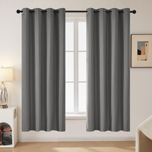 Deconovo Set van 2 verduisteringsgordijnen met oogjes, superzacht, warmte-isolerend, voor slaapkamer en woonkamer, 117 x 137 cm, lichtgrijs