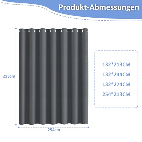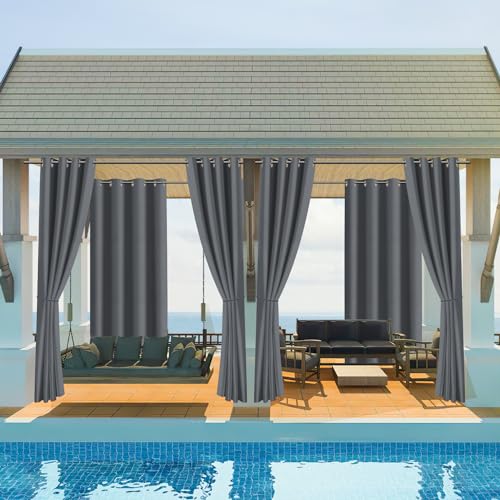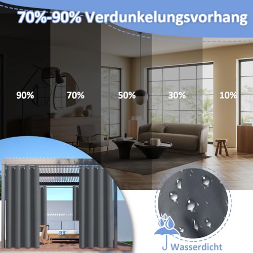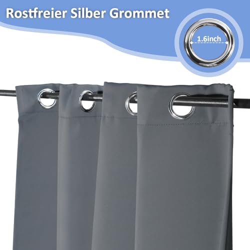 Jopassy Outdoorgordijn, ondoorzichtig, waterdicht, weerbestendig, outdoor gordijnen met ringen, zonwering en inkijkbescherming, outdoorgordijnen, voor balkon, terras, tuin, paviljoen, 213 x 254 cm (h