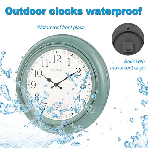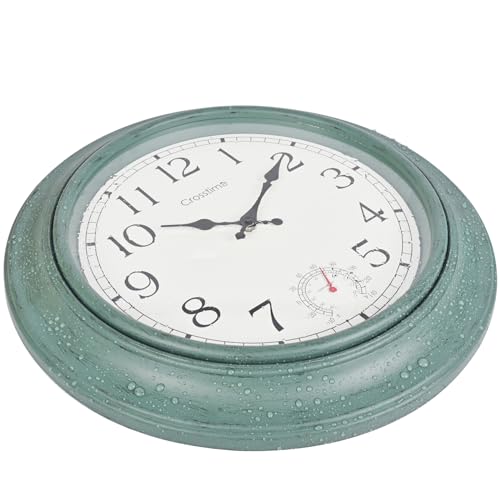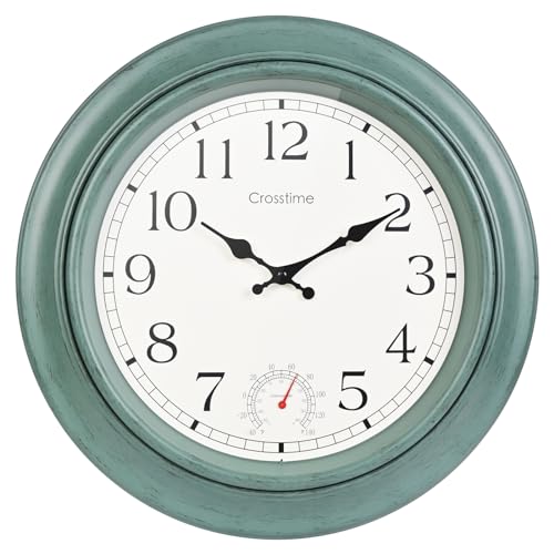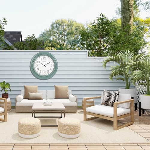 45 cm grote tuinklok waterdicht – vintage buitenwandklokken met thermometer voor de tuin, terras, zwembad, decoratie, saliegroen, 45,7 cm