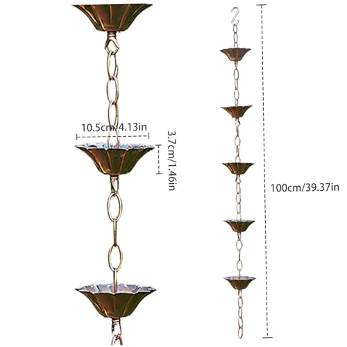 Size and Length: Our rain chain measures a total length of 3.28 FT, consists of 5 rain chain cups,sized at 4.13×1.45 inches,