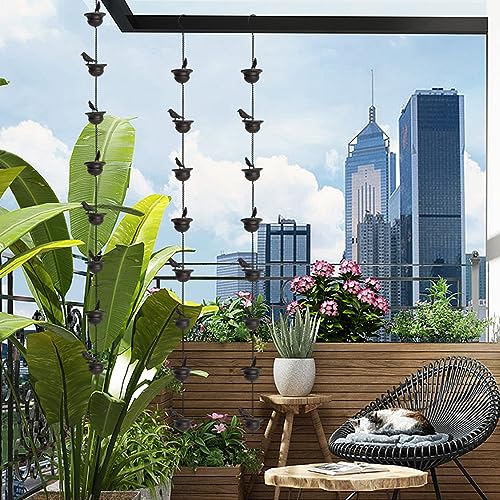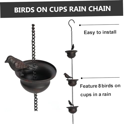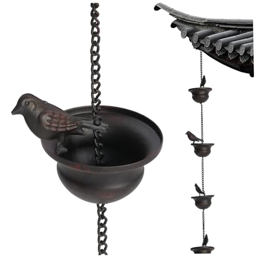 Obelunrp Regenketting, 2,4 m metalen vogelregenkettingen voor buiten, beweegbare hangende regenkettingen voor goten, roestvrije decoratieve regenvangers voor buiten tuin
