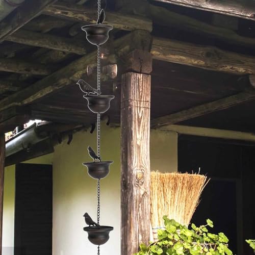 ✅Aesthetic Charm: Transform your boring gutters with this rain chain that showcases 18 beautiful metal birds adorned with a dark bronze finish. The birds enhance the exterior of your home and guide rainwater flow for maximum efficiency.
