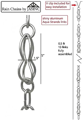 Rain Chains by JASINC 2,6 m Aqua Strands Link Rain Chain Wit, ter vervanging van dakgoot regenpijp, wateromleider, JAS1002AL