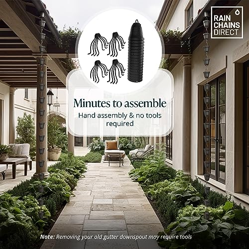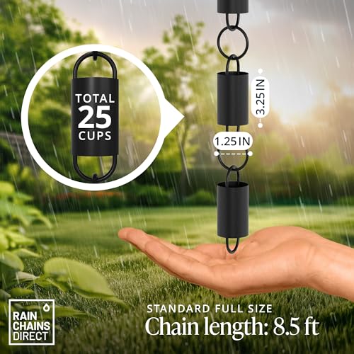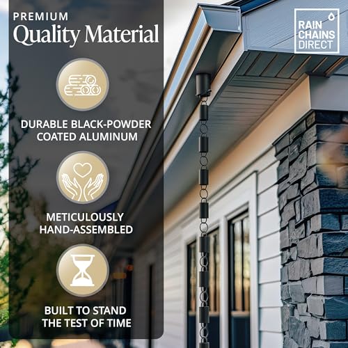Rain Chains Direct Contempo, 28,5 m lengte, aluminium, zwart gepoedercoat, functionele en decoratieve vervanging voor regenpijpen