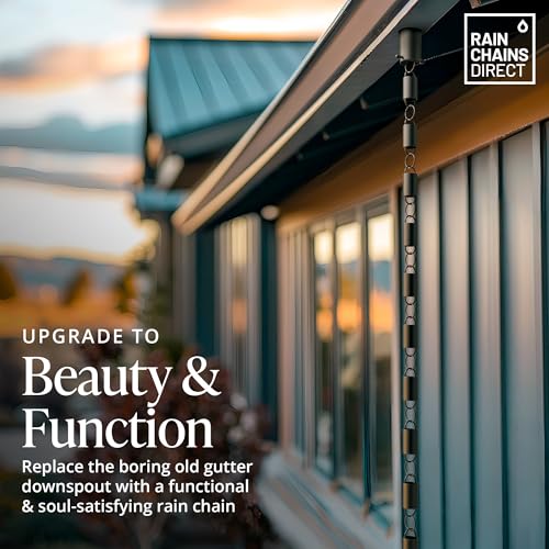 Functioneel maar mooi: Hoewel regenkettingen je huis verfraaien, zijn ze ook volledig functioneel en voeren ze water van de goot naar de grond (of een afvoer of een regenton) net als regenpijpen. “