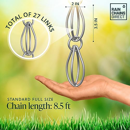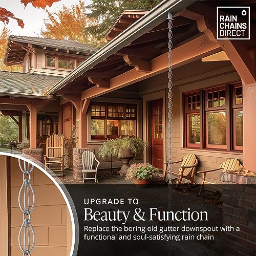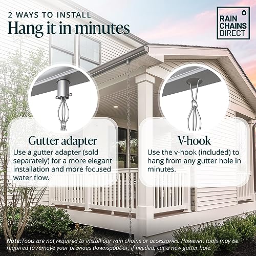Installeer in een handomdraai – U hoeft geen expert te zijn. Verwissel je regenkettingen eenvoudig voor regenpijpen met behulp van de meegeleverde ophanghaak. Onze regenkettingen voor buiten zijn compatibel met elk standaard gootgat. Optionele goot installateur wordt apart verkocht.