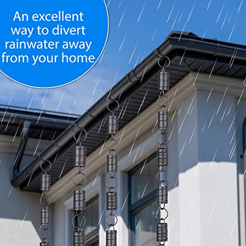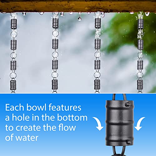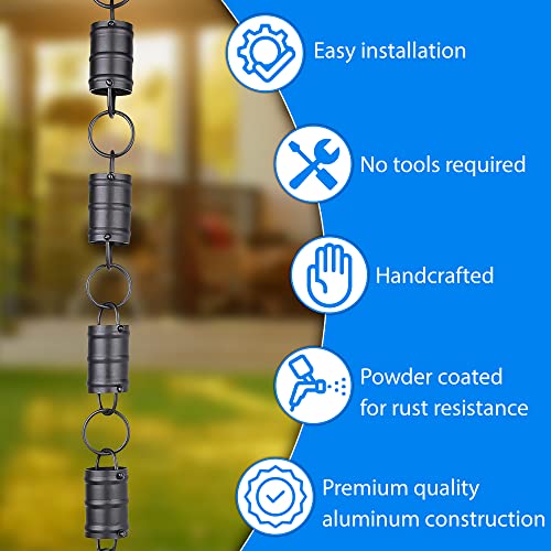 Rain Chains Pacific Drie strepen Cilinder Channel Link Regenketting, 8,5 Voet Lengte, Aluminium, Zwart Poedergecoat, Decoratief & Functioneel voor Gutter Downspouts