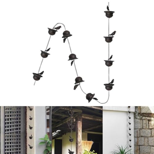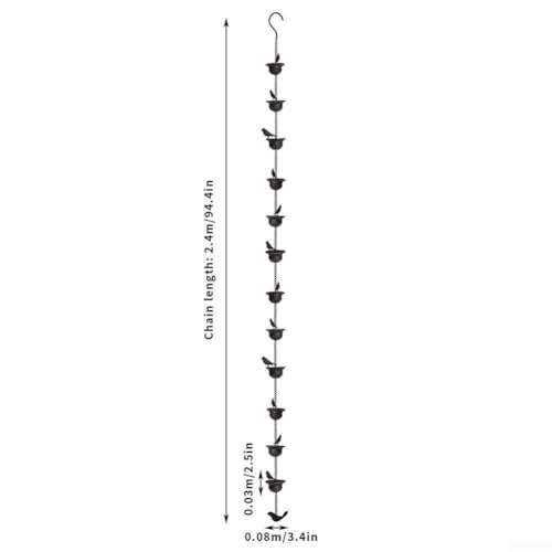 Mooi en sereen: Sierlijk hangend aan bomen of daken, de ketting is voorzien van 12 metalen vogels die een betoverend display creëren terwijl regenwater er doorheen stroomt. Het voegt een vleugje elegantie en rust toe aan elke buitenruimte, waardoor regenachtige dagen sfeervoller worden.