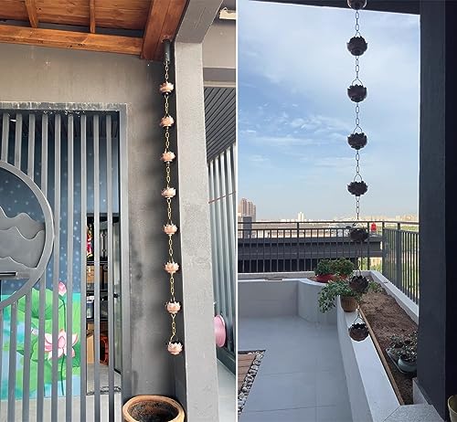 【 BEAUTIFUL WATERFALL EFFECT 】 Using the rain chain will direct the flow of rainwater to create a beautiful waterfall effect on your porch, balcony, yard, gutter, garden, porch, gazebo, and deck that will attract your attention.