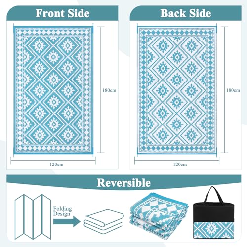 Enyhom Outdoor tapijten voor terrassen 120 x 180 cm, draagbare opvouwbare RV campingmat waterdicht buiten plastic stro tapijt omkeerbaar duurzame outdoor tuinmat voor achtertuin, terras, strand,