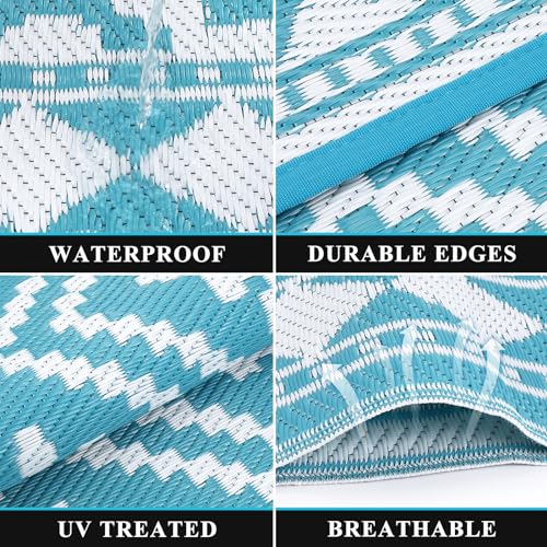 Multifunctionele mat: het plastic buitentapijt is ideaal voor een verscheidenheid aan buitenactiviteiten en binnendecoratie. Ze kunnen worden gebruikt op terras, dektuin, strand, veranda, picknick, barbecuefeest, campercamping, garage, appartement balkon, gazon, park, terras, zwembad en meer.
