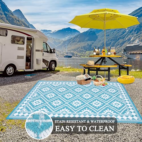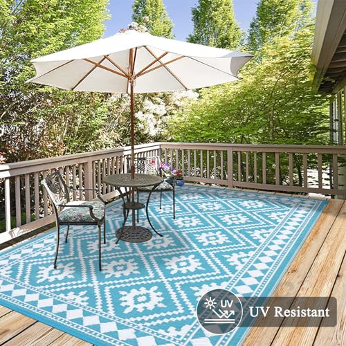 Decoratief en omkeerbaar: dit buitentapijt is omkeerbaar, tweezijdig ontwerp zorgt ervoor dat je twee verschillende looks hebt. Als een kant plakkerige vlekken heeft of je het patroon beu bent, draai het dan gewoon om voor een andere look. Koop twee prachtige indoor outdoor tapijten in één prijs.