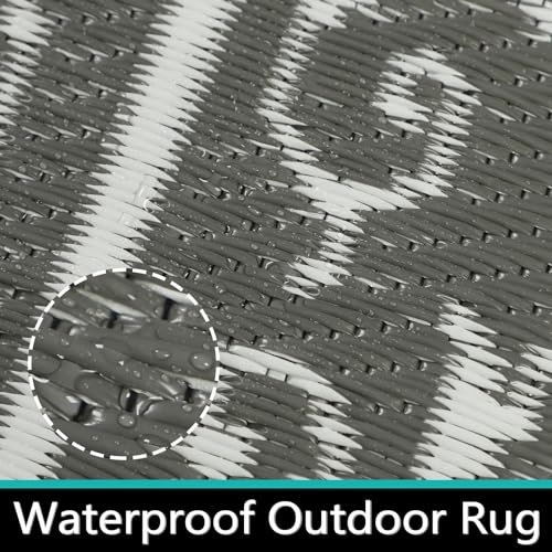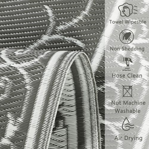 Waterdicht terras tuintapijt gemakkelijk schoon te maken: campingtapijten zijn gemaakt van waterdicht materiaal dat perfect is voor buitengebruik. En je hoeft je geen zorgen te maken over het vuil buiten, schud en veeg met een borstel. Voor een diepere reiniging kunt u een vochtige doek met milde zeep gebruiken of afspoelen met water en op natuurlijke wijze laten drogen.