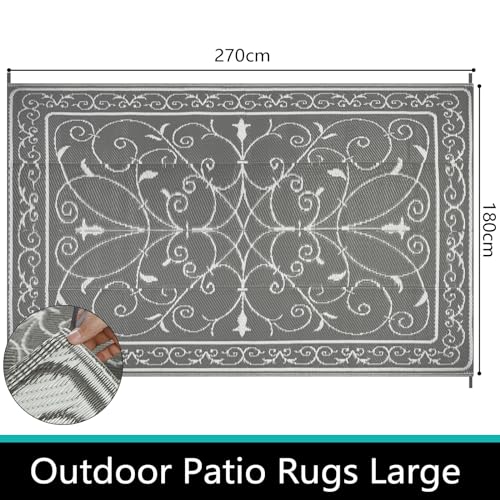 Famibay Outdoor tapijten voor terrassen waterdicht tuintapijt 180 x 270 cm omkeerbare plastic stro tapijten lichtgewicht camping mat outdoor tapijt voor balkon dek achtertuin veranda strand BBQ