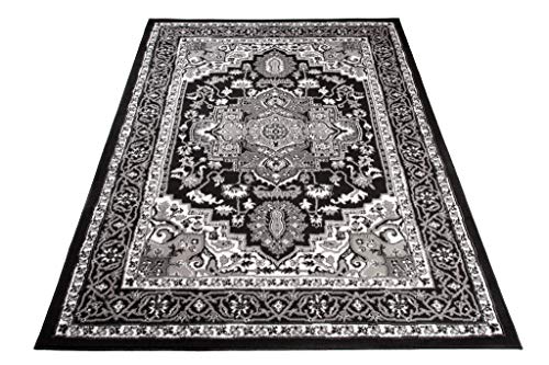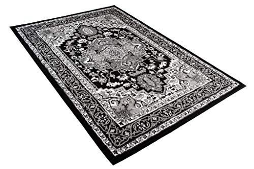 Mazovia Vloerkleed Oriëntaals – Tapijt Kortstondig Pooltje – Tapijten Oriëntaals Patroon – Tapijt Woonkamer, Slaapkamer, Eetkamer – OEKO-TEX Carpet – Rug – Zwart 80 x 150 cm