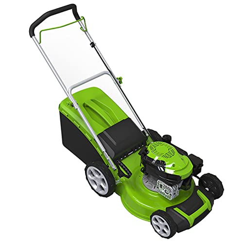 [Gas engine]: This gas powered self propelled lawn mower has a 144CC OHV gas engine and a 51cm steel mowing deck. It also has a powerful 4-stroke, single cylinder gas engine which makes it powerful enough to handle even the tallest and toughest grass.This gas lawnmower is equipped with a forced air-cooling system that keeps the engine running smoothly, so you can get the job done quickly.
