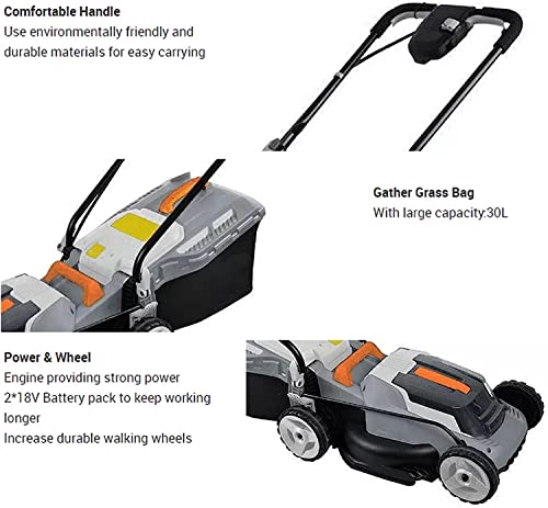 36V Lithium-Ion Electric Lawn Mowers Portable Battery Electric Lawn Mowers Cordless Walk-Behind Lawn Mowers Electric Lawn Mowers with Bagging Machines