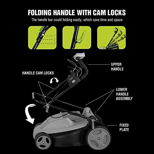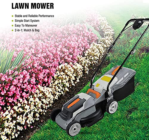 [Maintenance free]: The electric lawn mower is virtually maintenance free, with no gas, no oil, and no emissions. It starts instantly, is quiet, and delivers the power you need.