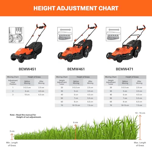 Black + Decker BEMW461BH-GB grasmaaier met fietsgreep, 1400 W, 240 V, 34 cm