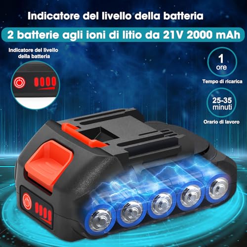 2 x 21 V-batterijen: de accukettingzaag is uitgerust met 2 x 2000 mAh 21 V batterijen, die in totaal 4000 mAh vermogen hebben, wat voldoende is om aan de dagelijkse behoefte aan tuin- en takken te voldoen. (De oplaadtijd van de accu bedraagt ca. 2 uur, het continue gebruik bedraagt ca. 30 minuten). Bovendien kan het met een 900 watt zuivere koperen motor van 10 inch hardhout in 10 seconden met dezelfde lichtheid als boter snijden.