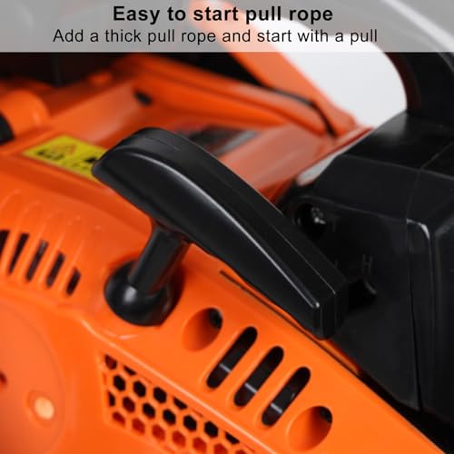 Meerdere voordelen: Met starttouw is de kettingzaag veiliger te bedienen. Automatisch oliesysteem, het smeermiddelvolume om voldoende en uniform werk te verzekeren. De geïntegreerde geleidingsplaat is ontworpen om hoge temperaturen en slijtage te weerstaan.