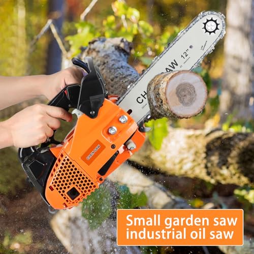 Saterkali Gas Kettingzaag 25.4cc Power Chain Saw,Draadloze Benzine Kettingzaag Handheld Benzine Kettingzagen voor Bomen, Gas Draagbare Kettingzaag voor Hout Snijden Outdoor Home Farm Gebruik Oranje