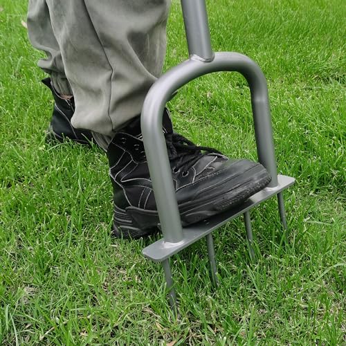 【Werkbesparend breed voetpedaal】: Aerificeervork met een ruime voethendel maakt deze gazonventilator je in staat om de neerwaartse druk te maximaliseren terwijl je naar beneden stapt om de diepere lagen van de bodem te bereiken. Dit verbetert de werkefficiëntie aanzienlijk, bespaart meer moeite en je hoeft je schoenen niet vuil te maken.