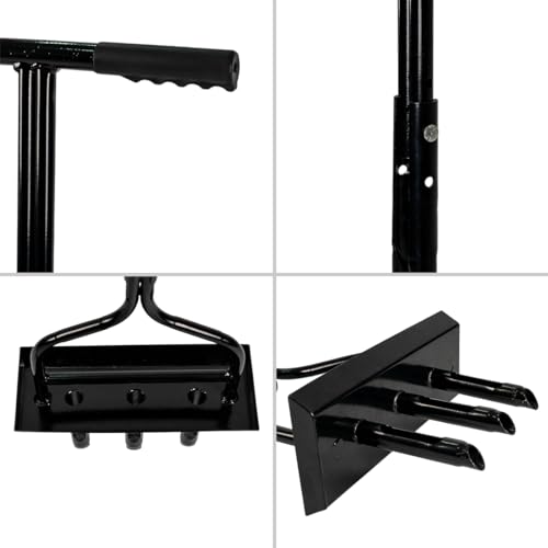 Gemaakt van massief metaal, roest niet gemakkelijk en duurzaam. Let op: als je bij gebruik niet in de grond kunt dringen, stap dan op het voetpedaal en schommel het heen en weer.