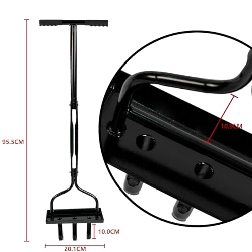 【Scherpe punt】: de aerificeervork heeft 3 scherpe ventilatiegaten en het puntige deel kan je helpen om de vloer snel en gemakkelijk in te brengen. De T-vormige handgreep is uitgerust met een antislip spons voor een comfortabelere bediening. De totale lengte bedraagt 95 cm, wat de rug tijdens het gebruik beschermt en de rug niet belast.