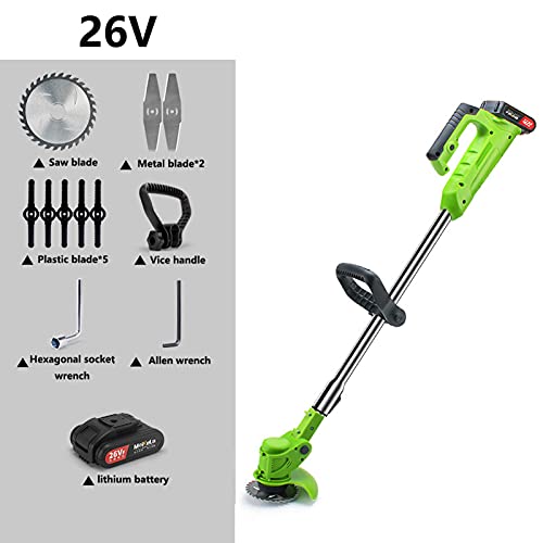 【Cordless lawn mower set】: lithium battery cordless lawn trimmer. Industrial grade high-power lawn mower 24V/26V. Large capacity and high power, fast charging in 2 hours. Eliminate the clutter caused by cables and wires. It can be moved at will, the operation is simple, and both women and the elderly can easily mow the lawn.