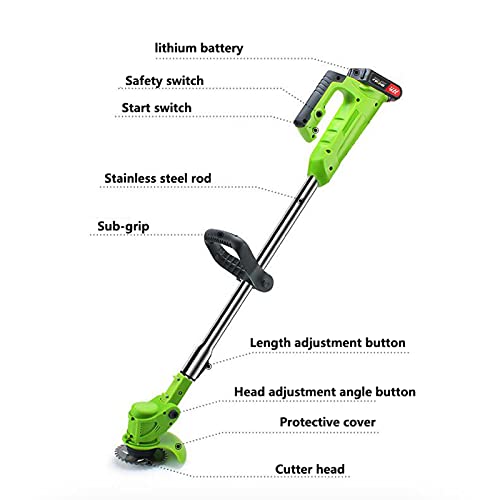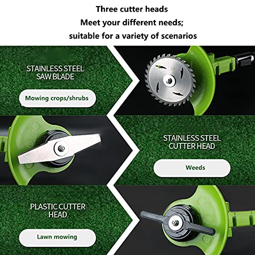 【Adjustable lawnmower】: The teles rod can be adjusted freely by 1-30cm to adapt to the height and posture of different users and reduce waist pressure. The head of the mower can be adjusted at 60°, and the rotating head can flexibly clean the corners of weeds. Change from lawn mower to Edger at any time.