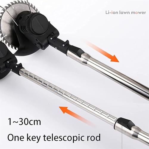 Ergonomisch ontwerp for het hele lichaam: de trimmachine is uitgerust met een verstelbare stang, die vrij kan worden aangepast van 1 cm tot 35 cm, zodat iedereen het gazon comfortabel kan maaien; deze onkruidwieder op accu is bovendien verstelbaar