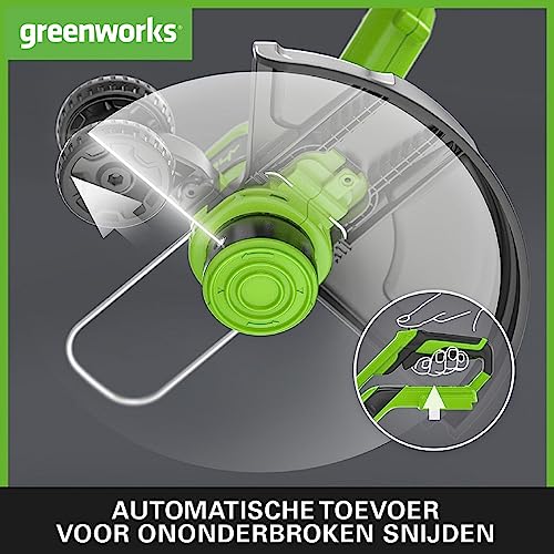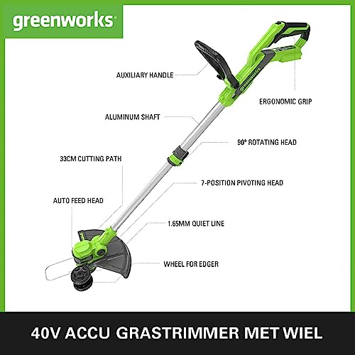 Greenworks G40LT33 Accu Grastrimmer met Wiel voor Kleine tot Middelgrote Tuinen, 33 cm Maaibreedte, Automatische Invoer 1,65 mm Nylondraad, ZONDER 40V Accu en Oplader