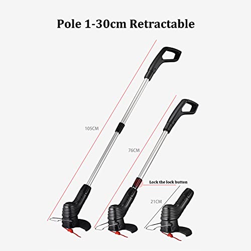 ◆ [Eenhandig en instelbaar]: de trigger en vergrendeling vereisen slechts één hand om te bedienen, de grastrimmerbatterij is uitgerust met een verstelbare aluminium buis, 0,39-11.81 inch ..