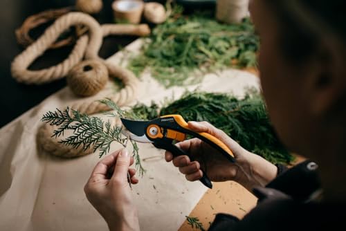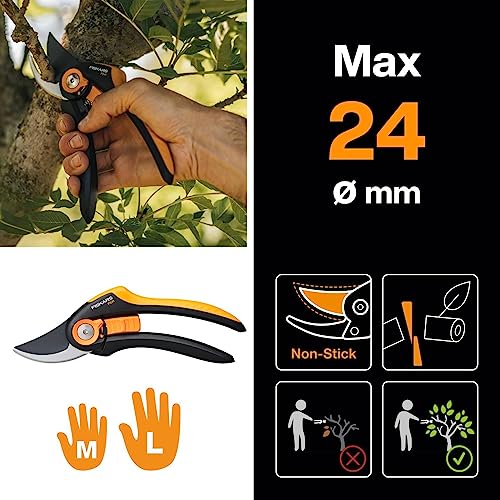 Fiskars Bypass-snoeischaar Plus SmartFit, P541, voor jonge takken en twijgen, antikleeflaag, roestvrijstalen messen, lengte: 20,1 cm, zwart/oranje, 1057169